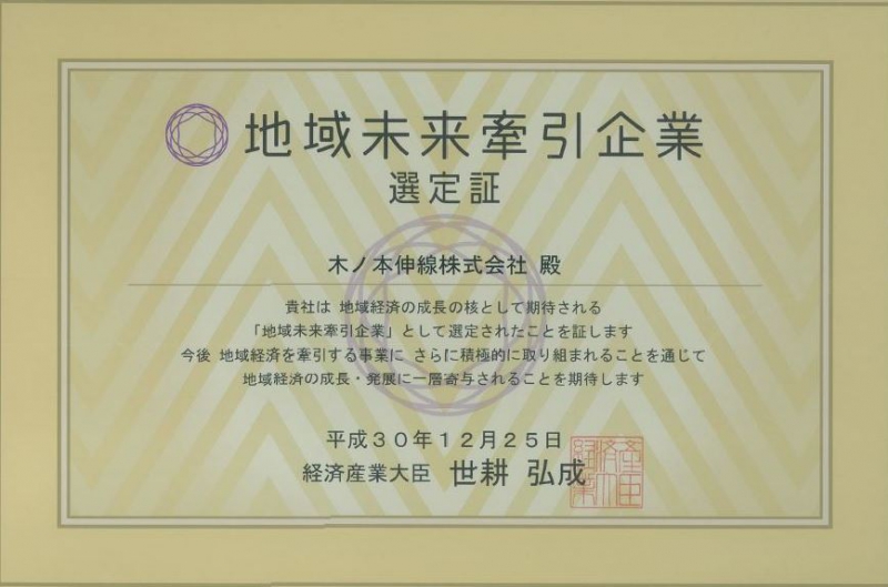 2018.12.25地域経済牽引事業の担い手の候補となる地域の中核企業として「地域未来牽引企業」に、経済産業省より選定されました。